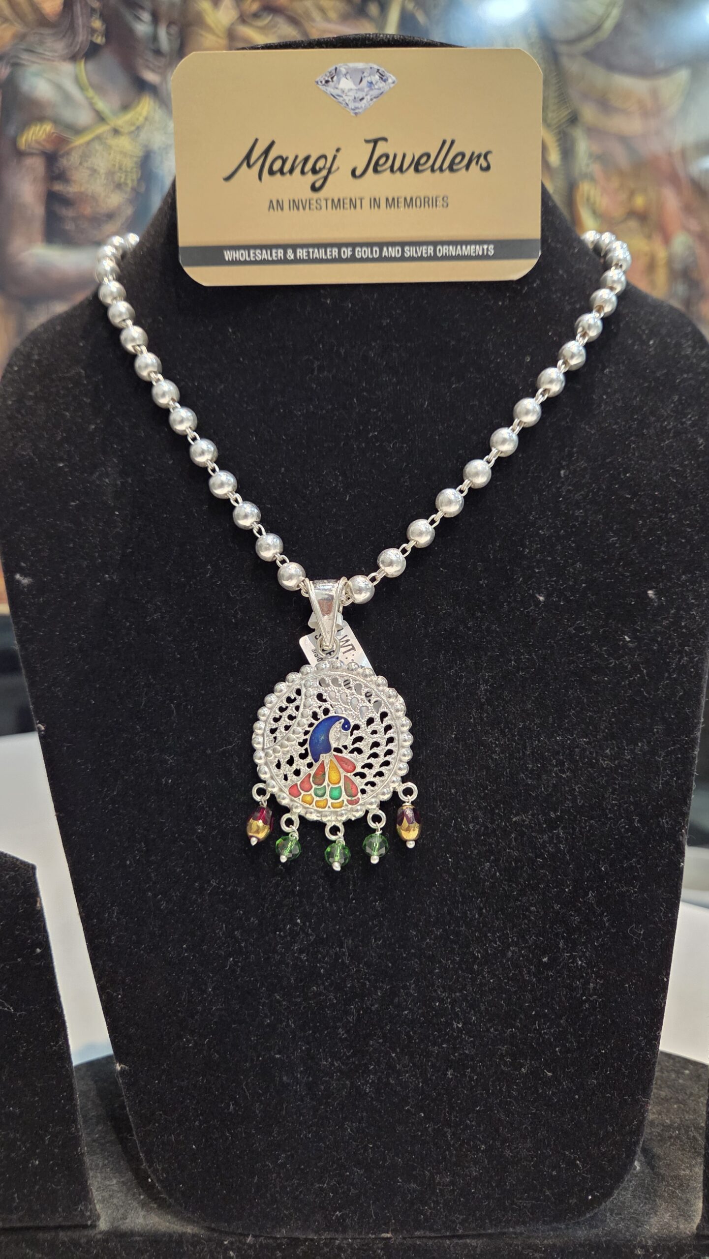 Experience the charm of our silver pendant and mala set, crafted from high-quality silver for timeless elegance. This set features a delicately designed pendant paired with a matching silver mala, creating a graceful accessory for any occasion. The lustrous finish and intricate detailing make it perfect for festive wear or daily sophistication .